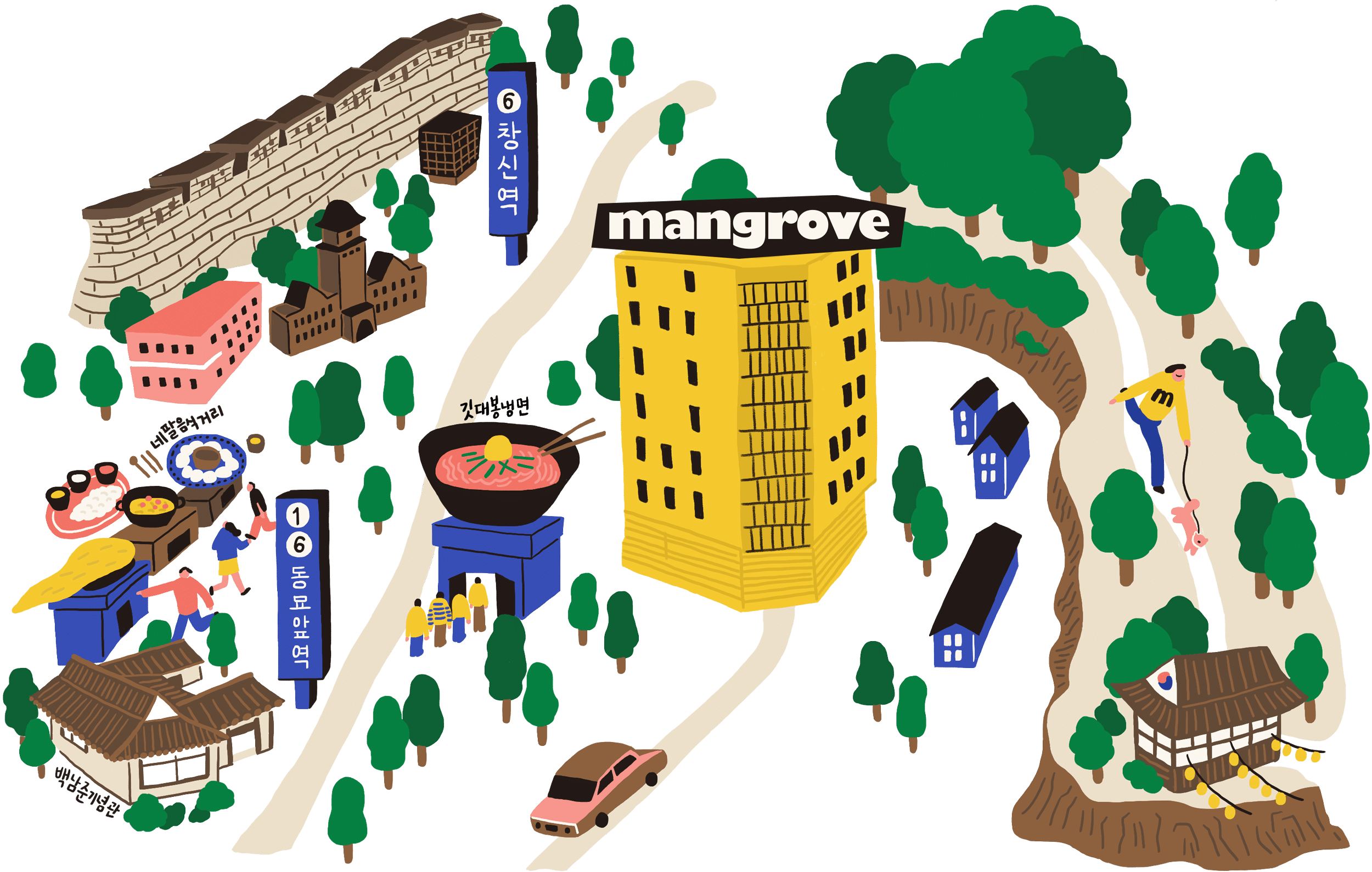 맹그로브 숭인은 서울 중심부의 정감 있는 동네에 스물네 명의 이웃들이 모여 사는 코리빙 하우스입니다. 세심하게 구성된 개인 공간과 넉넉한 공용 공간이 멤버들의 충분한 휴식을 돕고, 이웃들간의 친밀한 분위기를 형성합니다.